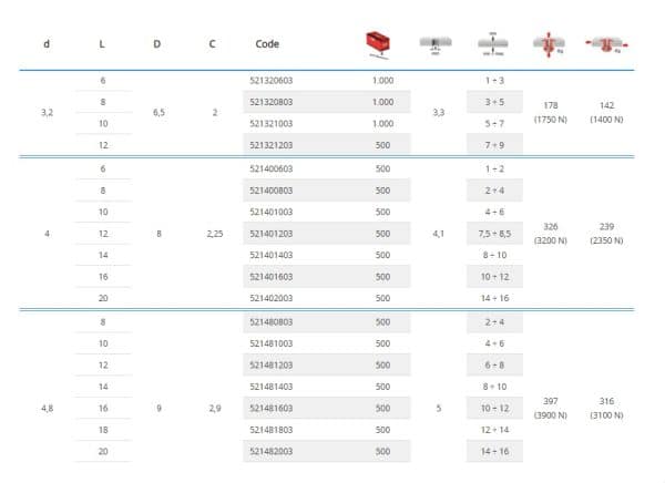 Portée de rivetage: 1 à 3 mm