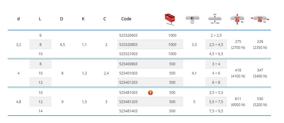 525320803 Rivet aveugle standard en inox à tête fraisée de diamètre 1/8″