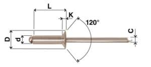 Le rivet FAR 525320803 est un rivet aveugle en inox à tête fraisée de 120 degrés.