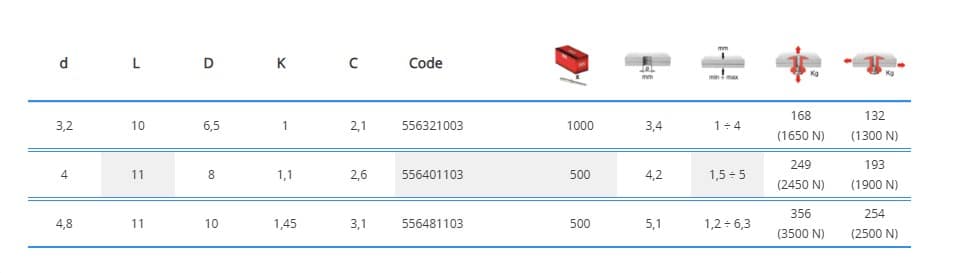 556401103 Rivet aveugle multigrip à tête dôme de la catégorie Multifar, diamètre 5/32″