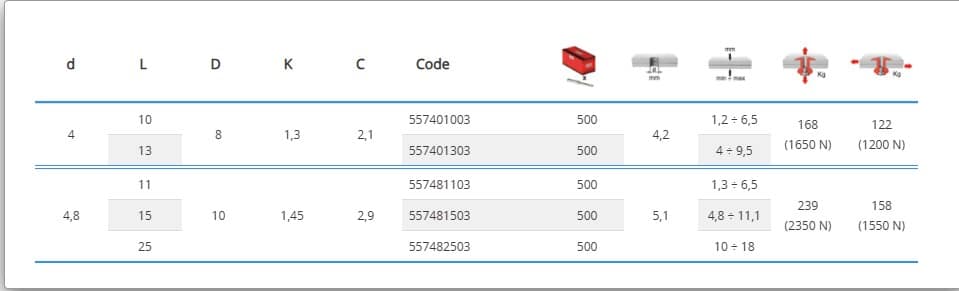 557481103 Rivet aveugle multigrip à tête dôme de la catégorie Multifar, diamètre 3/16″