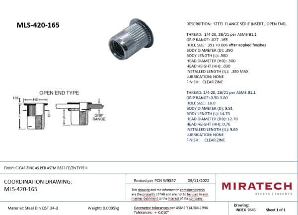 Le MLS-420-165 est un écrou à sertir en acier avec bout ouvert