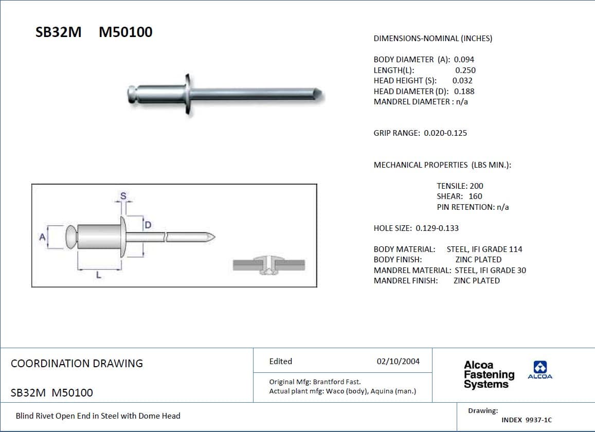 Le SB32M est un rivet aveugle à bout ouvert en acier avec tête dôme.