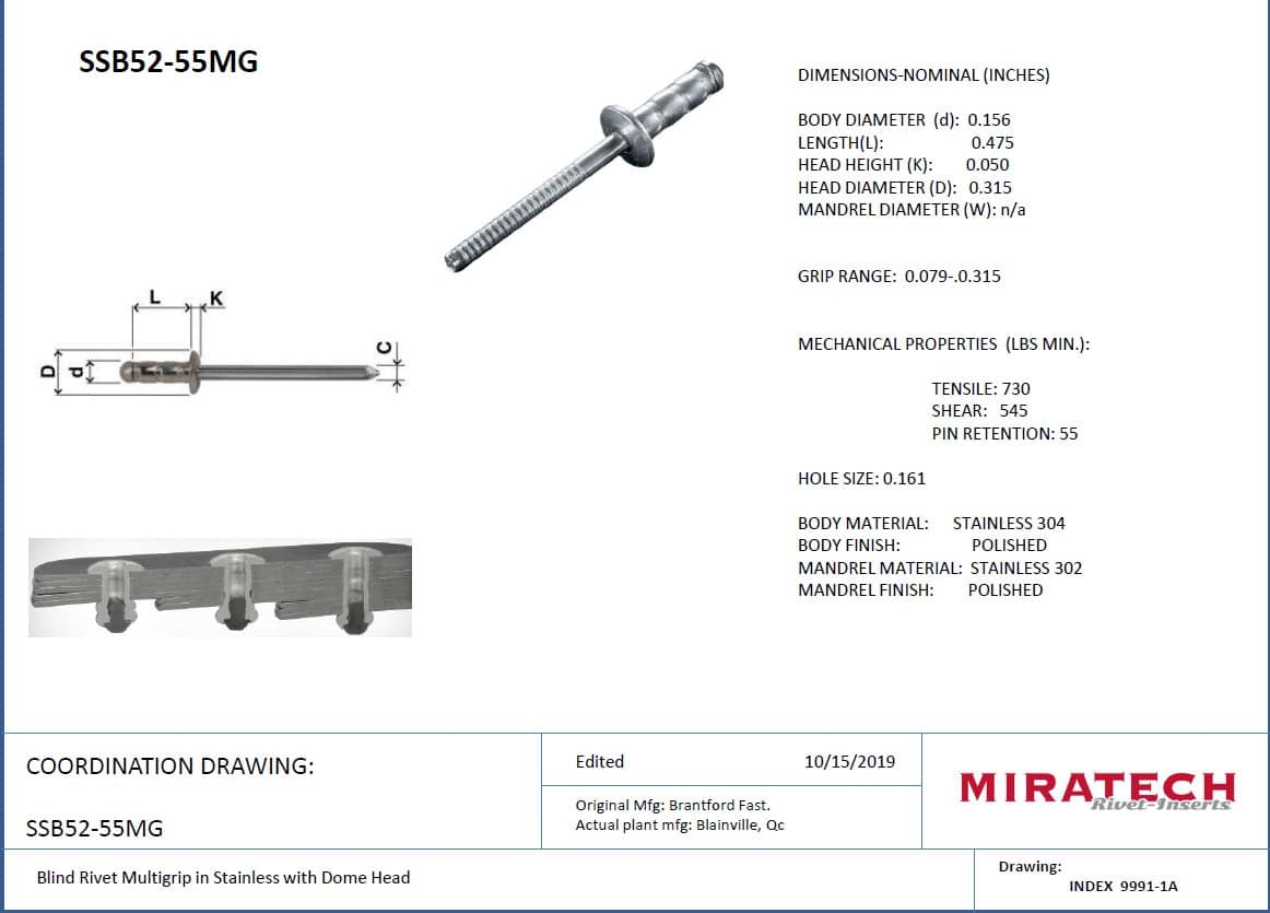 Le SSB52-55MG est un rivet aveugle multigrip en inox avec tête dôme.